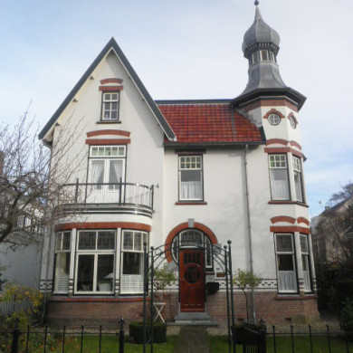 Inleiding Aan de oostzijde van de Laan gelegen VILLA, gebouwd in 1907 naar ontwerp van J.R. Vlaming. De architectuur heeft in de asymmetrische opzet en in de detaillering verwantschap met de Art Nouveau. Omschrijving Op vrij grondplan gebouwde villa bestaande uit parterre, verdieping en kapverdieping onder samengesteld zadeldak, afgeplat schilddak en plat dak. De kappen hebben rode tuiles du Nord. De kappen en platte daken hebben gladde windveren en gootlijsten. De villa heeft op de rechterhoek (ZW) een achthoekige zinkgedekte toren met lantaarn, uivormige bekroning en smeedijzeren windwijzer. Het pand heeft drie rechthoekige schoorstenen. Het muurwerk is merendeels witgepleisterd. Rode baksteen is toegepast tussen maaiveld en lekdorpels van de parterre. Direct hierboven bevindt zich een banddecoratie in rode baksteen. Geglazuurde rode baksteen is toegepast in lekdorpels, lateien en ontlastingsbogen. Boven de hoofdingang bevindt zich een hoefijzervormige ontlastingsboog. De asymmetrische voorzijde (W) heeft ongeveer in het midden de genoemde hoofdingang, bestaande uit een meerdelig kozijn met glas-in-lood om een paneeldeur met glaspanelen in gebogen vorm. Links van de hoofdingang bevindt zich een driezijdige erker met meerdelig kozijn, stolpramen en glas-in-lood in de bovenlichten. Boven de erker is een plat met houten balkonhek. De rechterzijde (Z) heeft een zesdelig kozijn met glas-in-lood in de bovenlichten. De aangebouwde schuur onder plat dak op de zuid-oosthoek heeft een paneeldeur met glaspaneel en bovenlicht. De linkerzijde (N) heeft nabij de voorzijde twee boven elkaar gesitueerde schuifvensters, op de parterre met glas-in-lood in het bovenlicht en op de verdieping met zesruits roedenverdeling in het bovenlicht. De geveltop heeft een rond vierruits venster, De achterzijde (O) heeft een uitgebouwde parterre, gedeeltelijk onder afgeplat schilddak en gedeeltelijk onder plat dak (serre, keuken, schuur). De serre bevindt zich rechts (W) en heeft een groot meerruits kozijn met afgeronde hoek, dubbele paneeldeuren met glaspanelen, een gebogen ruit op de hoek en bovenlichten met glas-in-lood. Links van de serre een teruggelegen paneeldeur met vierruits raam en zesruits bovenlicht. Links hiervan de uitgebouwde keuken met twee vensters met zesruits bovenlichten. Links van de keuken staat de eerder genoemde schuur, voorzien van paneeldeur met vierruits raam en zesruits bovenlicht. De oostmuur van de schuur heeft twee kleine vierruits vensters. De geveltop van het niet uitgebouwde gedeelte heeft een paneeldeur met zesruitsraam. Het interieur bevat nog oorspronkelijk stucplafonds in de kamers op de parterre. Waardering De villa is van algemeen belang uit cultuur- en architectuurhistorisch oogpunt als gaaf bewaard gebleven voorbeeld van vroeg 20ste-eeuwse villa-architectuur. Het object heeft situationele waarde vanwege de prominente stedebouwkundige situering.