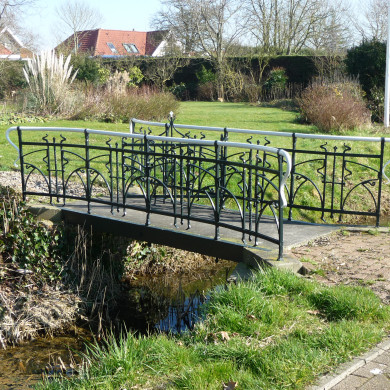 Over een sloot, ten behoeve van de toegang tot de villa aangelegd bruggetje met gemetselde steunwerken, voorzien van fraaie smeedijzeren leuningen en een toegangshekje midden op de brug, uitgevoerd in rijke Jugendstil.