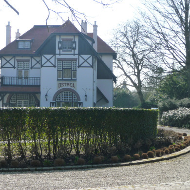 Grote, vrijstaande en door tuin omgeven villa, genaamd Ostrea uit 1903. De rijke architectuur vertoont invloeden van de cha- letstijl en de Jugendstil.