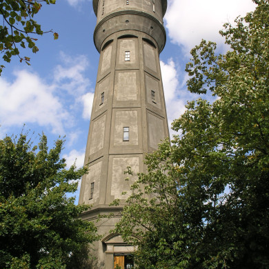 De geheel betonnen toren van 50 meter hoogte, staat op een achthoekige plattegrond en heeft een eveneens achthoekige, naar boven taps toelopende schacht met daarop een uitkragend rond gedeelte, waarin zich het waterreservoir van 350 m3 bevindt.