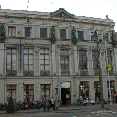 Gebouw der Vereniging Arti et Amicitiae, uit een ouder pand verbouwd in 1855 door J.H.Leliman, met rijk versierde gepleisterde gevel.