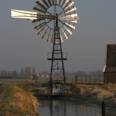 De windmotor is door ligging en hoofdvorm van beeldbepalende waarde in het open polderlandschap.