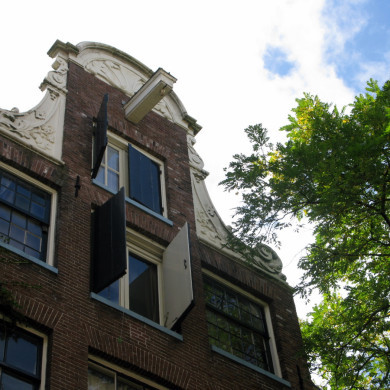 Vroegere gevel van het achterhuis van Singel 48, thans zijgevel van de achtervleugel van het moderne pand Singel 46-48; vierraamsgevel onder gesneden, in- en uitgezwenkt verhoogde lijst met consoles (XVIIIb); stoephek uit de bouwtijd. (Gevel Roomolenstraat).