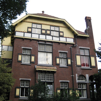 Aan vier zijden vrijstaande VILLA, grenzend aan het Vondelpark, gebouwd door Ed. Cuypers in 1901-1902 in opdracht van Ch.E.H. Bossevain in de trant van het Rationalisme met invloed van chaletstijl.