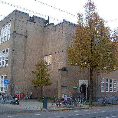 Op de hoek van de Cornelis Krusemanstraat en Okeghemstraat in 1920 in verstrakte Amsterdamse School-stijl opgetrokken SCHOOL voor Uitgebreid Lager Onderwijs (U.L.O.). Het gebouw is ontworpen door de toenmalige gemeentelijke dienst Publieke Werken in opdracht van de directeur J.P. van Es.