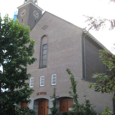 In de ruimte tussen kerk en pastorie bevinden zich vergaderzalen met onder meer ingebouwde kasten.