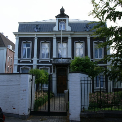 Voormalige DIRECTIEVILLA van brouwerij De Zwarte Ruiter, omstreeks 1890 gebouwd in een door het neo-classicisme beïnvloede traditioneel-ambachtelijke stijl. De aangebouwde veranda aan de rechterzijgevel is uitgesloten van bescherming.
