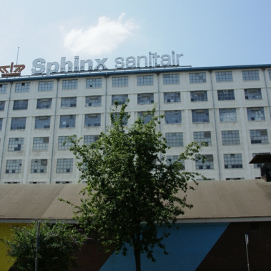 WERKPLAATS in utilitaire hoogbouw van de sanitairfabriek NV Koninklijke Sphinx, 1930-1940, dominant gesitueerd aan Boschstraat en Bassin. Het fabrieksgebouw is in drie stadia tot stand gekomen (1930, 1932 en 1940) en daarbij steeds in noordelijke richting uitgebreid. Aannemer Van den Hof te Maastricht was verantwoordelijk voor de realisatie van het geheel.