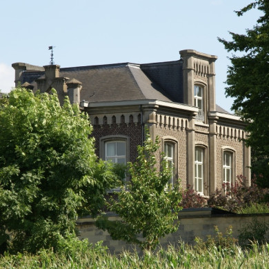 Huis, XIX A, met latere bovenverdieping, onder een zadeldak. Vensters en segmentboogingang in Naamse steen.