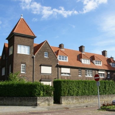Carré met 40 AMBTENARENWONINGEN van de Bouwvereniging "Woningzorg" te Maastricht, 1920-21. Gebouwd door aannemersfirma L.H. Bredero te Utrecht, naar een ontwerp van de Maastrichtse architecten V. Marres en W. Sandhövel, in een traditionele bouwstijl met expressionistische elementen.