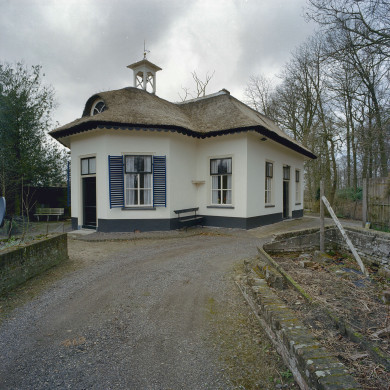 De tuinmanswoning is voorzien van een ornamentele, geschulpte daklijst.