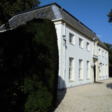 Aan de noordzijde van het voorplein staand, in oorsprong vroeg-18de-eeuws bouwhuis waarvan de voorgevel op het zuiden gericht is. Deze voormalige oranjerie (thans woonhuis) is een witgepleisterd bakstenen gebouw op L-vormige grondslag onder een met grijze pannen gedekt afgeknot schilddak. Om het gebouw loopt een omgaande kroonlijst met geprofileerde gootlijst. De voorgevel heeft een grijs geschilderde plint. Omgeven door een geprofileerde lijst de ingangspartij, thans bestaande uit een getoogde deur met paneelvlakken welke gescheiden wordt van het 3-ruits bovenlicht door een brede gesneden bovendorpel met naar boven krullende voluten aan de uiteinden. Aan weerszijden worden deur en bovenlicht thans geflankeerd door een zgn. melkmeisje. Boven de ingangspartij een gedeeld 16-ruitsvenster met aan weerszijden wangen waarboven een getoogde boog die het dakschild enigszins opheft en zich in goot- en kroonlijst voortzet. De gevelvlakken links en rechts van de ingangspartij zijn identiek. Beganegronds (thans) drie 15-ruitsschuifvensters en op de verdieping drie 6-ruitsuitzetvensters. Aan weerszijden van de ingangspartij een wandlamp waarvan de smeedijzeren arm met voluut- en bladmotieven in Lodewijk XIV-stijl. De linkerzijgevel was tot het begin van de 19de eeuw voorzien van een driezijdige pui waarin vensters als in de koepelkamer. Het gevelvlak is links thans voorzien van twee 15-ruitsschuifvensters met op de verdieping drie 6-ruitsuitzetvensters en rechts van een dubbele deur met in beide deur vleugels een 12-ruitsvenster. Boven de ingang een 4-ruits venster met aan weerszijden een wang, gedekt door een getoogd fronton met in het tympaan een bladversiering. Rechts een 6-ruitsuitzetvenster. In de rechterzijgevel een toegangsdeur met links een 6-ruitsvenster. Centraal op de verdieping een 6-ruitsuitzetvenster. In de achtergevel van dit deel beganegronds twee 2-ruitsvensters en op de verdieping een 2-ruits venster en twee 6-ruitsvensters. De achtergevel van het linker bouwvolume heeft beganegrondse en 2-ruitsvenster en twee 12-ruitsschuifvensters en op de verdieping daarboven twee 6-ruitsuitzetvensters.