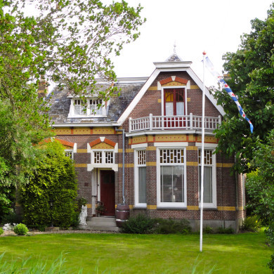 Het vrijstaande WOONHUIS met aangebouwde bijkeuken ligt op een ruim terrein en is vermoedelijk gebouwd als rentenierswoning. De burgerwoning is op stilistische gronden te dateren in het eerste decennium van de 20ste eeuw: in de decoraties is de invloed van de vernieuwingstendenzen herkenbaar, mede op grond waarvan het woonhuis tot de Overgangsarchitectuur wordt gerekend. Het gietijzeren TOEGANGSHEK dateert uit de 2de helft van de 19de eeuw. De recentere aanbouw aan de bijkeuken is voor de bescherming van ondergeschikt belang.