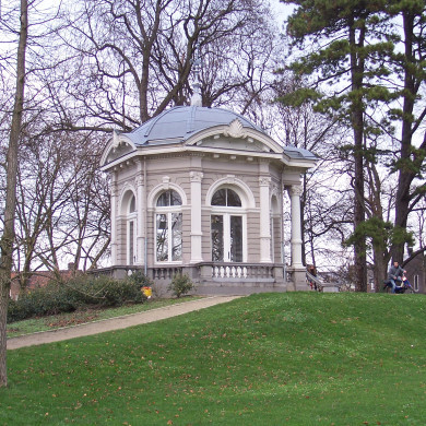 In een neobarokke bouwstijl in 1888 in opdracht van Amadeus Stevens op een heuvel aan de rand van het park van de voormalige proosdij gebouwde THEEKOEPEL genaamd "Gloriëtte" naar ontwerp van Lambert von Fisenne.
