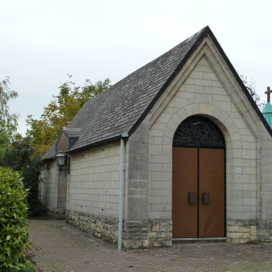 Katholieke kerk, pastorie, kapelanie en baarhuisje. Het toegepaste bouwmateriaal is mergel en Kunradersteen.