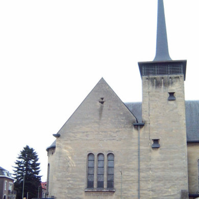 In een traditionele bouwstijl met Neo-Romaanse elementen in 1931 naar een ontwerp van architect Alfons Boosten uit Maastricht in opdracht van de Sint Josef parochie gebouwde KATHOLIEKE KERK.