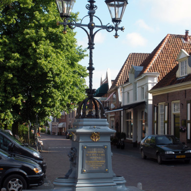 HERINNERINGSMONUMENT bestaande uit een straatpomp met spuwers en een dubbele sierlantaarn op basement. Het monument is in november 1894 op de Markt naast het gemeentehuis geplaatst ter ere van Baron van Heeckeren, naar aanleiding van de door hem aangelegde waterleiding.