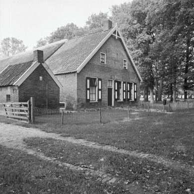 Boerderij gebouwd rond 1880 in een ambachtelijk-traditionele stijl volgens het hallehuistype met dwarsdeel. De boerderij is vermoedelijk gebouwd ter vervanging van een voorganger. Mogelijk zijn daarbij bouwmaterialen van de oude boerderij gebruikt. Ook zijn bouwmaterialen gebruikt die afkomstig zijn van de voormalige Havezathe Rheebruggen.