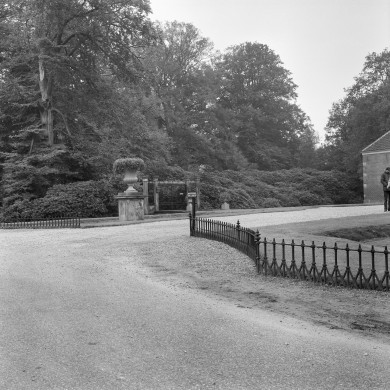 - als zeldzaam voorbeeld van een laag siersmeedijzeren hek;
