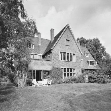 Omschrijving Pand van één bouwlaag op rechthoekige plattegrond met aan de lange gevels diverse aanbouwen en risalieten onder steekkappen. De gevels zijn opgetrokken in een gele handvormsteen onder zadeldaken die met rode Engelse daktegels zijn gedekt. De samengestelde vensters hebben stalen ramen met roedenverdeling binnen kozijnen van bruine zandsteen, in de dakkapellen binnen houten kozijnen. De centrale entree in de oostgevel bestaat uit een getoogde deur in een portiek met segmentboog dat geheel met bruine zandsteen is omlijst.