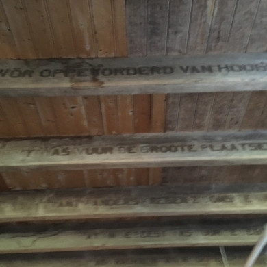 - de spreuken die verwijzen naar de bouwgeschiedenis van de boerderij en de regeringsmaatregelen op het gebied van de landbouw ten tijde van de Eerste Wereldoorlog