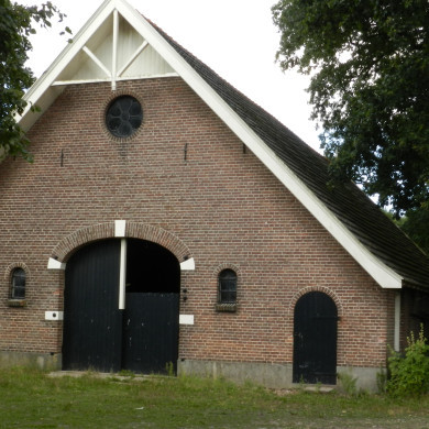 Driebeukige vakwerkschuur.