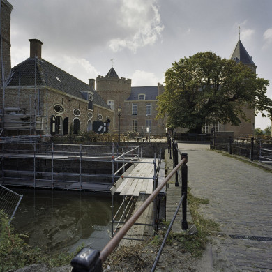 Deze vermoedelijk uit het begin van de 19de eeuw daterende brug wordt abusievelijk ook wel de Romeinse brug genoemd; hij bevindt zich op de zichtas naar het noorden vanuit het kasteel, daar waar de vijver na een verbreding weer smaller wordt; de brug is opgebouwd uit zeer oude bijna vierkante baksteen en aan de bovenzijde afgedekt met stukken natuursteen; de smalle waterdoorgang is kepervormig en eveneens afgezet met stukken natuursteen.