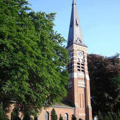 In de kopgevel van de zijbeuk een enkel spitsboograam. De gevelvlakken op zijn de hoeken voorzien van steunberen. De onderbouw van de traptoren is vierkant, overgaand in een achtzijdige opbouw, voorzien van smalle rechthoekige vensters en een uitzwenkende, achtvlaks spits. In de onderbouw een gedenksteen ter gelegenheid van de kerkbouw.