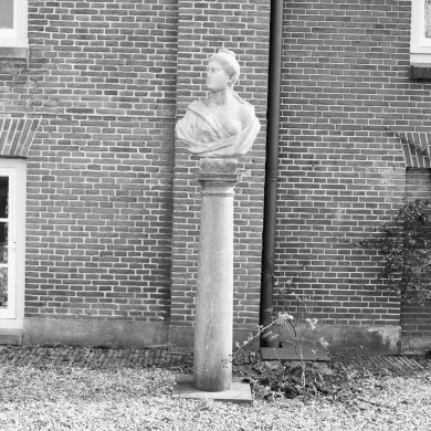 Voor de vier hoeken van het huis vier achttiende-eeuwse marmeren bustes van twee mannen- en twee vrouwenfiguren. Oorspronkelijk maakten de bustes deel uit van een laag toegangshek. In een verkoopakte uit 1796 genoemd 'een partij fraaye marmeren borstbeelden'.