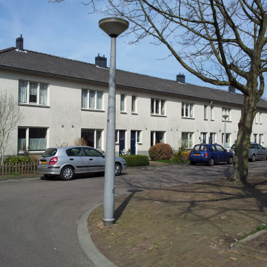 Zuidoostelijke reeks proefwoningen naar rationalistisch ontwerp van J.H. Mulder jr. volgens systeem Winget uit 1920-1921.
