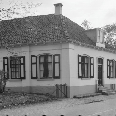 sociëteit (ca. 1840). Neo-klassicistisch gebouw met pilasters en fronton. Boven de getoogde en van Empire-ramen voorziene vensters accolade-vormige togen.