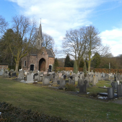 - vanwege de ligging van het gebouw, tussen toegangshek, bomen en de begraafplaats, zichtbaar vanaf de Enterstraat.