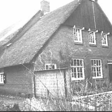 Boerderij onder laag rieten schilddak; onderschoer. De vensters hebben kalf, roedenverdeling en halve luiken, XVIII/XIX.