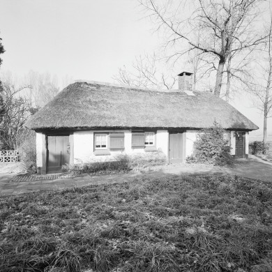 Het éénlaags, vrijstaande pand op rechthoekige plattegrond heeft een rieten schilddak met nokvorst. De voet van het dak van de achtergevel bestaat uit zwarte oud-Hollandse dakpannen. Het pand is opgetrokken in handvorm baksteen; de plint is zwart geschilderd, het overige muurwerk wit. Tussen de muur en de aansluiting bij het dak zijn houten planken gebruikt. De schoorsteen is vernieuwd in machinale baksteen. De korte oostelijke zijgevel is naar de straat gekeerd; hierin bevindt zich een vierruits raam met luik. In de lange zijgevel (zuid) bevinden zich drie vierruits ramen met luiken en drie deuren; geheel rechts de hoofdingang met vernieuwde paneeldeur, in het midden en links een opgeklampte deur. Deuren en luiken zijn donkergroen, de kozijnen rood en het raamwerk is wit geschilderd. Het pand is zo laag, dat er vrijwel geen ruimte is tussen de muuropeningen en het dak. De lange gevel (noord) is zeer laag aangezet; waar zich het stalgedeelte bevond, is er een klein stalraam; in het dakvlak bevindt zich een klein dakraam. In de korte zijgevel (west) zijn tuindeuren aangebracht ter plaatse van de oorspronkelijke staldeuren. Inwendig is het pand voor bewoning geschikt gemaakt. Tegen de binnenzijden van de gevels zijn durox-blokken gemetseld. De vloer is gedeeltelijk van beton, deels van plavuizen. De oorspronkelijke indeling is gewijzigd, maar laat zich nog herkennen. Tweezijdige gemetselde schouw. Op het erf een bakstenen put.