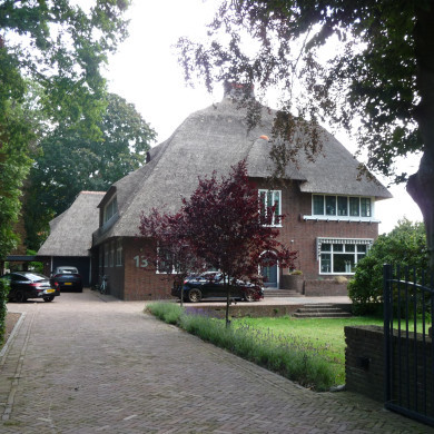 Het LANDHUIS aan de Steenwijkerweg 13 te Wolvega is in 1930 ontworpen en, volgens mondelinge overlevering, in 1933 gebouwd. Het huis, dat sinds de bouw fungeert als dokterswoning met praktijk, ligt aan een brede uitvalsweg (de voormalige Rijksstraatweg), sterk teruggerooid en gescheiden van de hoofdweg door een diepe en brede voortuin met oprijstrook. Ook aan de achterzijde van het landhuis ligt een diepe tuin, die tegenwoordig veel kleiner is dan oorspronkelijk het geval was. De aanleg van voor- en achtertuin is niet meer oorspronkelijk. Aan de voorzijde scheidt het oorspronkelijke lage bakstenen muurtje met pilaartjes de grote voortuin van de stoep en de straat. Aan de zijkanten en de achterkant bestaat de tuin-afscheiding uit struiken en bomen.
