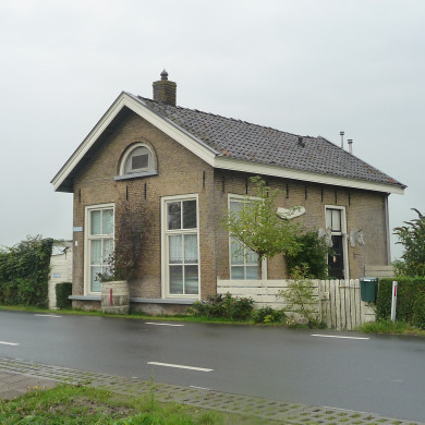 Het bouwwerk heeft een rechthoekige plattegrond en is één bouwlaag hoog. Het is in gele bakstenen opgetrokken en wordt door een zadeldak met zwart geglazuurde Hollandse pannen bedekt. Op de nok staat een gemetselde schoorsteen. In de voorgevel en aan de oostzijde van de zijgevels bevinden zich in totaal vier (twee in de voorgevel) grote zesruitsvensters met houten kozijnen en enkele rollaag. In de top van de voorgevel zit een halfrond venster. De vier vensters rusten op een doorlopende onderdorpel. In de zuidelijke zijgevel zit de houten voordeur met tweeruits bovenlicht. De noordelijke zijgevel wordt grotendeels aan het zicht onttrokken door de vele bijgebouwde houten schuurtjes. Aan de oostzijde van die gevel bevindt zich een deur. De achtergevel is in 1981 gepleisterd en er zijn nieuwe vensters in geplaatst.