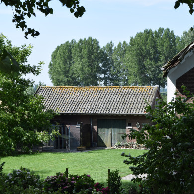Westzijde, grenzend aan mestput, voorzien van vier deurtjes.