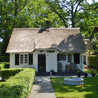Inleiding In 1911 naar ontwerp van architect Th. Rueter gebouwd vrijstaand KOLONIEHUIS. Het kleine koloniehuis is oorspronkelijk gebouwd als studeervertrek voor A. Roland Holst en behoorde bij de Internationale Broederschap die zich in 1900 op de grens van Blaricum en Laren vestigde. Deze Broederschap was een christelijk-anarchistische beweging, opgericht door prof. J. van Rees en dominee Kylstra.