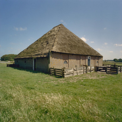STOLPSCHUUR, behorend bij het boerderijcomplex aan de Hallerweg nabij Den Burg. De stolpschuur dateert uit omstreeks 1903 en werd zodanig gebouwd dat hij later, indien nodig, nog voor bewoning geschikt kon worden gemaakt. Daarom is de voorgevel (W) van de stolpschuur bijvoorbeeld hoger opgetrokken en zijn er blinde spaarvelden aangebracht, die konden worden opengebroken om er vensters in te plaatsen. De schuur is gelegen ten zuiden van de boerderij.