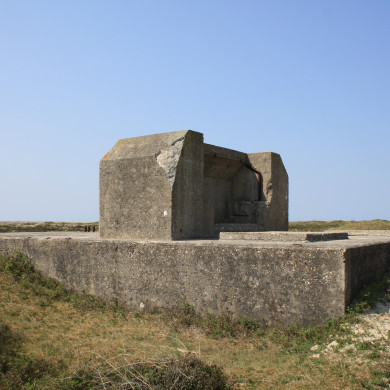 Voormalige GESCHUTOPSTELLING MET MUNITIEDEPOT, munitielift en afwachtingsruimte voor manschappen, deel uitmakend van de in 1938-1939 gebouwde "Batterij Den Hoorn" op Texel.