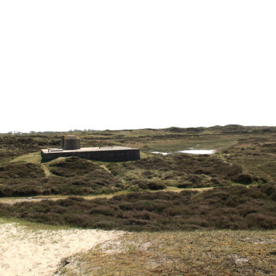 Voormalige GESCHUTOPSTELLING MET MUNITIEDEPOT, munitielift en afwachtingsruimte voor manschappen, deel uitmakend van de in 1938-1939 gebouwde "Batterij Den Hoorn" op Texel.