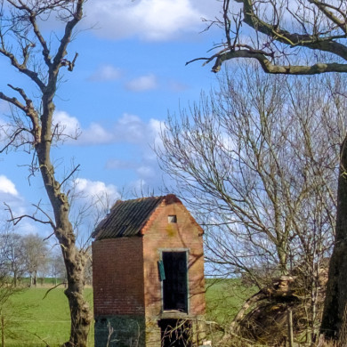 DUIVENTIL uit 1906 geheel opgemetseld van rode baksteen; fundering opgemetseld van gesinterde steen, is aan voorzijde open. Duiventil wordt gedekt door zadeldak van oranje Hollandse pannen. Aan voorzijde bevindt zich een opgeklampte deur; in voorgevel één en zijgevel twee kleine openingen.