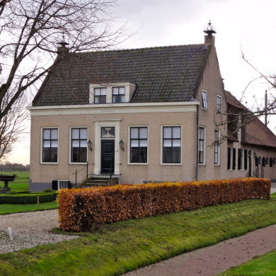 Grote hoeve (XVIII ?) gaaf bouwlichaam en hoog strodak. Het uit XIXc daterende woongedeelte heeft in de top van de puntgevel een neo-gotisch venster. Ramen uit de bouwtijd. In de zijgevel tussen woon- en bedrijfsgedeelte een puntgevel.