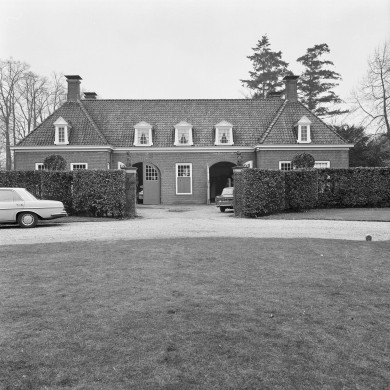 Kort na 1869 gebouwde, één bouwlaag hoge BOERDERIJ (toponiem "tweede bouwhuis"), waarin thans (1996) een woonhuisgedeelte, schuren en paardenstallen (voorheen zetboer/tuinmanswoning en koeienstallen), gelegen ten westen van het bouwhuis. De boerderij op U-vormige grondslag uit rode baksteen wordt overkapt door een met blauwe oudhollandse pannen en muldenpannen gedekt, enigszins overstekend, samengesteld zadeldak met wolfeinden dat voorzien is van gootlijsten. De representatieve voorgevel (oost) heeft een wat terugspringend middendeel waarin de hoofdentree, bestaande uit een deur met een door roeden verdeeld en getoogd bovenlicht, die aan weerszijden wordt geflankeerd door een getoogd 6-ruitsschuifvenster. De voorgevel is voorzien van gepleisterde plinten, deur- en vensteromlijstingen met geprofileerde lijsten, kroonlijsten en cordonlijsten langs de topgevels. De achter- en zijgevels zijn eenvoudiger samengesteld. In de voorgevel van beide zijvleugels bevindt zich een baander die voorzien is van vier, licht getoogde smalle ruitjes en een deur. Boven de baanders bevindt zich twee getoogde hooiluiken met ronde vensters. Tussen de zijvleugels is aan de achterzijde bevindt zich een plat dak. De zijvleugels zijn ook aan de achterzijde voorzien van een baander, cordonlijst en hooiluiken. In de zuidelijke vleugel bevindt zich de houtopslag waarvan de uit open houten delen opgetrokken wand getuigd. In de noordelijke vleugel bevinden zich stallen. Het interieur heeft nog grotendeels zijn oorspronkelijke indeling en interieur. Ten westen van de boerderij staat een in oorsprong uit de 18de eeuw daterend bakstenen BAKOVEN op rechthoekige grondslag onder een met grijze pannen gedekt zadeldak met overstek. De naast de bakoven staande beuk was van belang voor de trek.