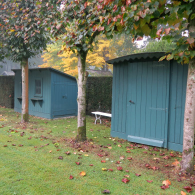 KINDERHUISJE (A). KINDERHUISJE, waarvan de oorspronkelijke functie kippenhok was, uit ca. 1930. Het uit verticale houten delen opgetrokken speelhuisje op rechthoekige grondslag, onder een thans (1996) met bitumen gedekt lessenaarsdak, is groen geschilderd. In de zijgevels bevinden zich de entrees, in de voorgevel twee vierruitsvenstertjes waaronder een soort vensterbankje. De binnenzijde is ongeschilderd. Het kinderhuisje staat thans naast het andere speelhuisje (B) in het tuingedeelte tussen het voorplein en de "lage tuin", de zgn. "lindentuin".