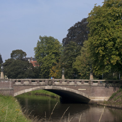 - vanwege de gaafheid van de brug, lantaarns en landhoofden