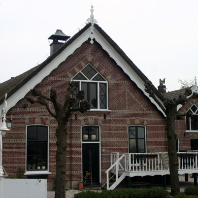 Het zomerhuis heeft een iets korter en smaller rechthoekig grondvlak dan de boerderij, maar de rooilijn van de achtergevels sluiten wel op elkaar aan. De symmetrisch ingedeelde voorgevel is dan ook iets kleiner dan de voorgevel van het woongedeelte, maar heeft verder een vergelijkbare gevelindeling en detaillering, met dien verstande dat zich ter plaaste van de centrale entreedeur een schuifraam bevindt. De linker langsgevel (west) heeft een segmentbogig stalvenster en een deur.