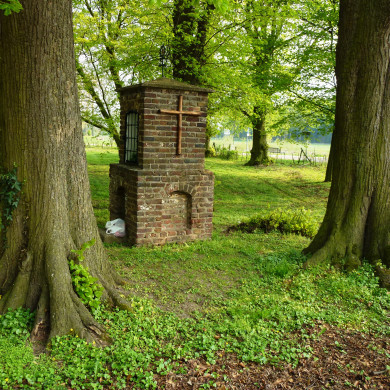 KAPEL, XIX-XX, baksteen; ten zuidwesten van het huis aan het begin van het oprijpad in het weiland. Vierkante plattegrond; aan de oostkant is een nis met afgeplatte boog, waarin een Mariabeeldje. Het zeer lage tentdakje is van cement en is bekroond met ijzeren kruisje. Om de kapel 6 oude linden.