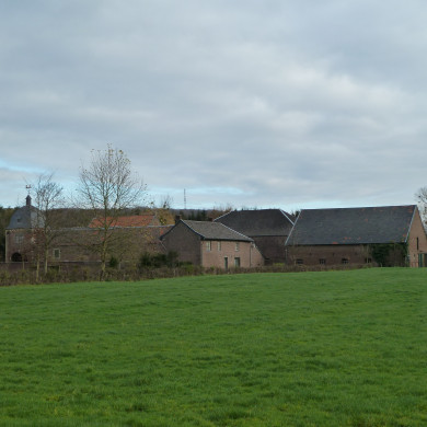 BOERDERIJ met SCHUREN, mogelijk gedeeltelijk XVII; XVIII-XIX; boerderij op Z-plattegrond; bakstenen gebouw onder met grijze (soms gemengd met rode) pannen gedekte zadeldaken; de noord-zuid lopende middenvleugel (XVII?) sluit met de noordelijke topgevel aan op de poorttoren; in de beide eindvleugels, die loodrecht op de middenvleugel staan, bevinden zich woningen. Er zijn twee schuren: de grote schuur ten oosten van de boerderij, XVIII; baksteen onder schilddak, grijze pannen; de tweede, kleinere schuur, XIX, staat ten zuid-oosten van de boerderij en is hiermee verbonden door een korte muur; deze schuur, baksteen onder zadeldak met grijze pannen, vormt de oostgrens van de moestuin.