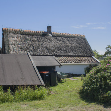 Aan de voorzijde (NW) bevindt zich de lage wand onder de aankapping. De wand was in oorsprong blind.